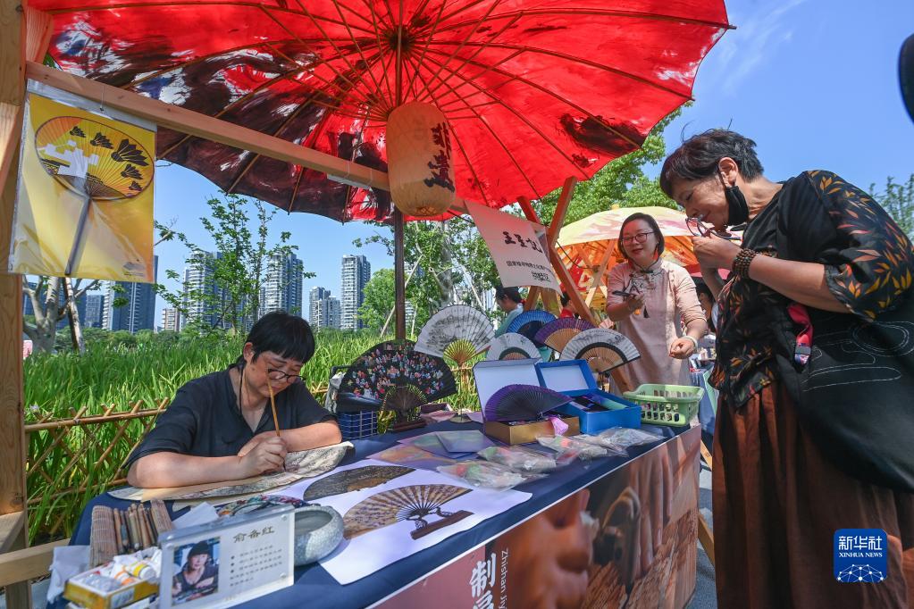 6月9日,活動(dòng)現場(chǎng)展示的入選國家級非遺代表性項目名錄的王星記制扇技藝。