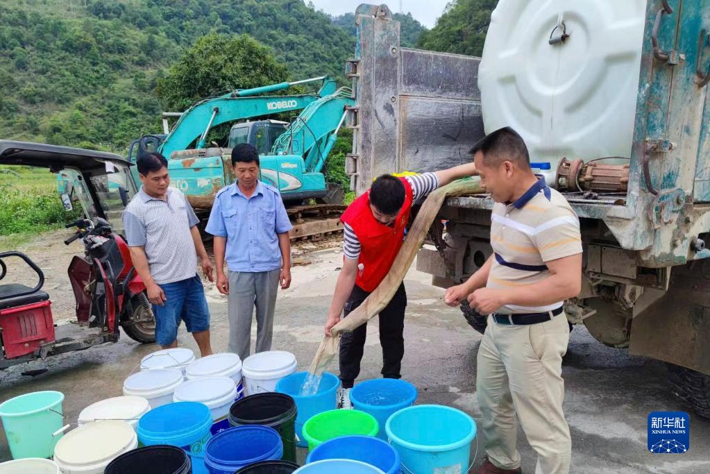 6月6日,廣西德??h城關(guān)鎮黨員先鋒隊為該鎮云梯村群眾送飲用水。