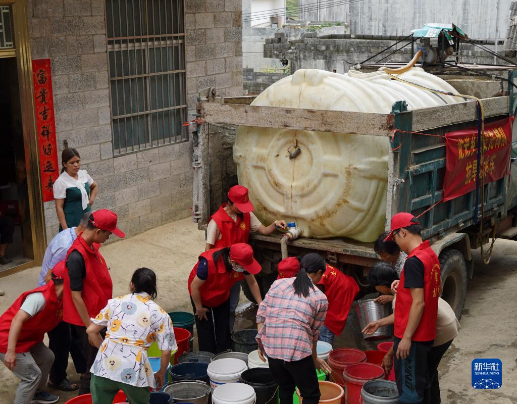 6月6日,在廣西德??h龍光鄉那練村,黨員先鋒隊為缺水村屯送水。