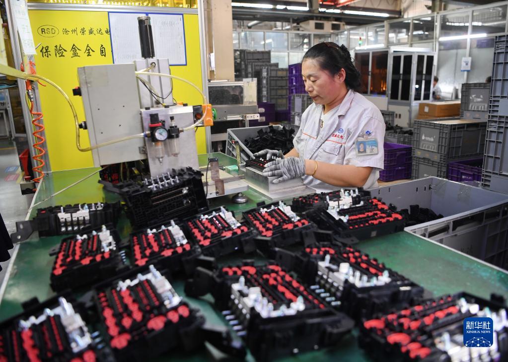 6月9日,河北滄州榮盛達電器有限公司工人在汽車(chē)保險盒生產(chǎn)線(xiàn)上工作。