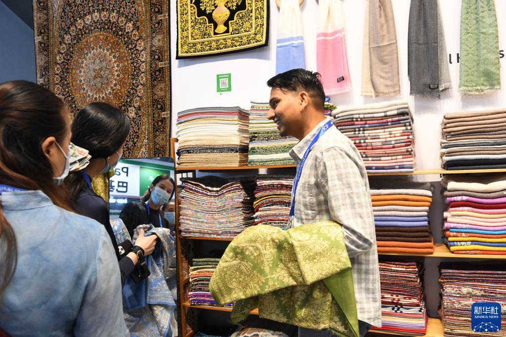 6月9日,在文博會(huì )“文旅消費館·一帶一路國際館”尼泊爾展臺,觀(guān)眾在選購特色商品。
