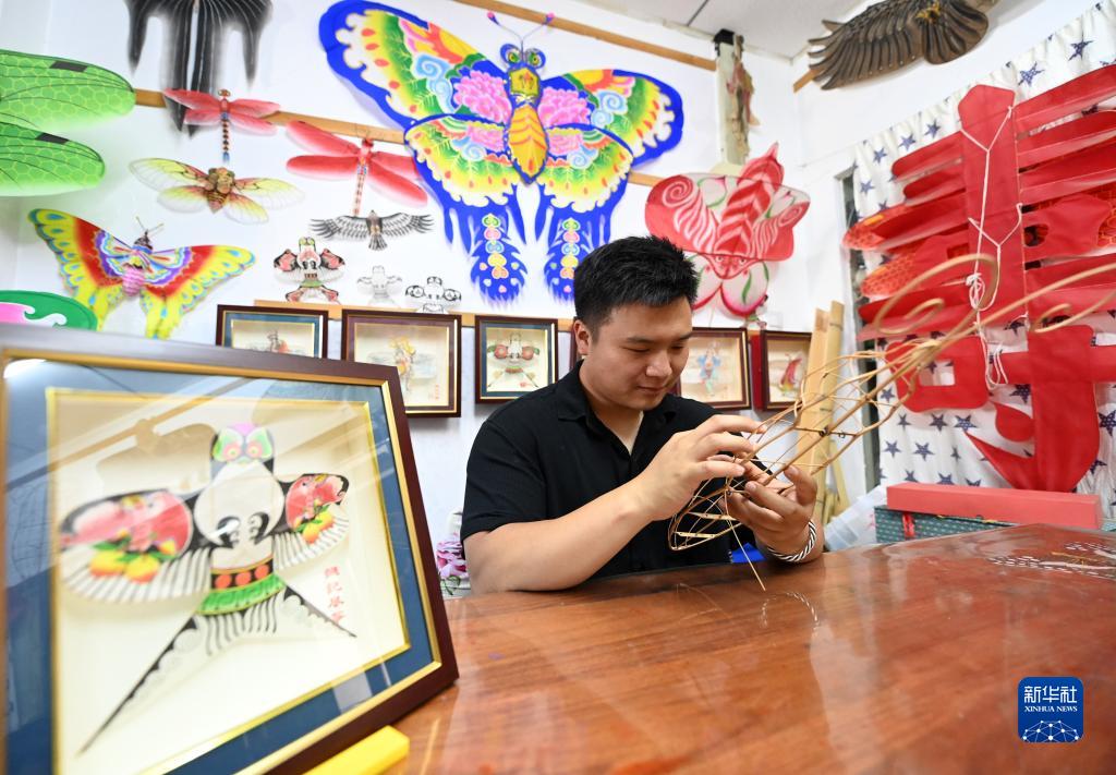 出身風(fēng)箏世家的魏博文大學(xué)畢業(yè)后,回到家鄉跟隨父親魏國秋“入行”做風(fēng)箏。他從自己有所基礎的繪畫(huà)著(zhù)手,發(fā)揮年輕人的創(chuàng )新優(yōu)勢,在風(fēng)箏設計上屢屢出新,不僅與一些游戲公司合作推出風(fēng)箏聯(lián)名款,還推動(dòng)風(fēng)箏制作技藝的改進(jìn)創(chuàng )新,設計了適合在室內放飛的迷你風(fēng)箏。