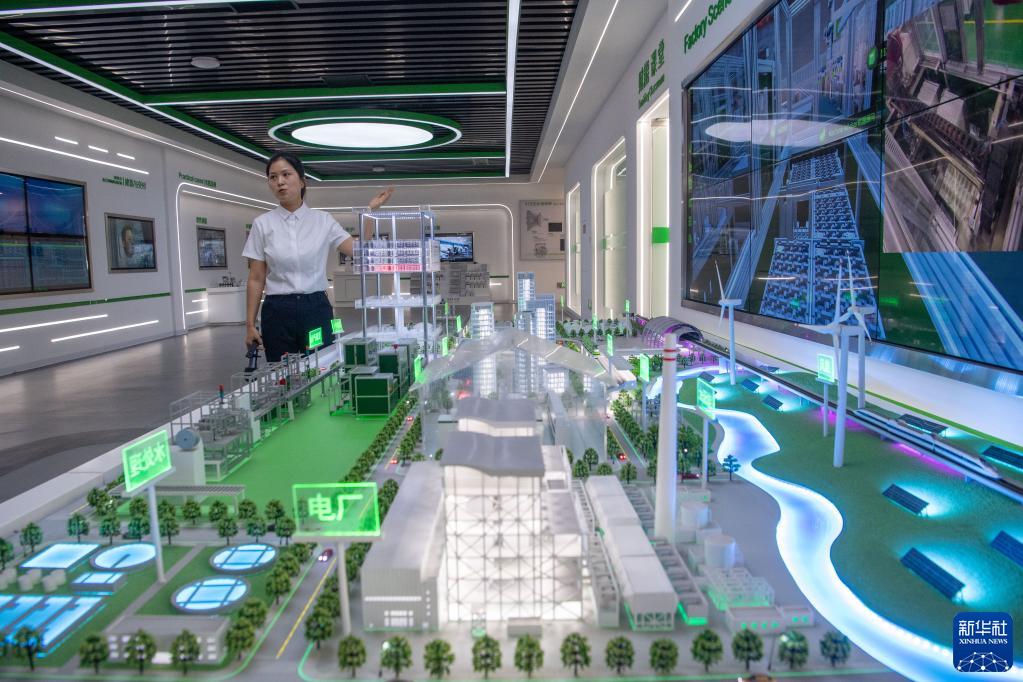 6月6日,在位于重慶市萬(wàn)州區的萬(wàn)州綠色智造賦能中心,工作人員在介紹為企業(yè)定制的綠色節能方案。該中心是重慶市第一個(gè)專(zhuān)注綠色賦能的平臺,著(zhù)力為工業(yè)企業(yè)提供創(chuàng )建零碳工廠(chǎng)、零碳供應鏈、數字化工廠(chǎng)和智能化工廠(chǎng)的整體解決方案,助力制造業(yè)高端化、智能化、綠色化發(fā)展。