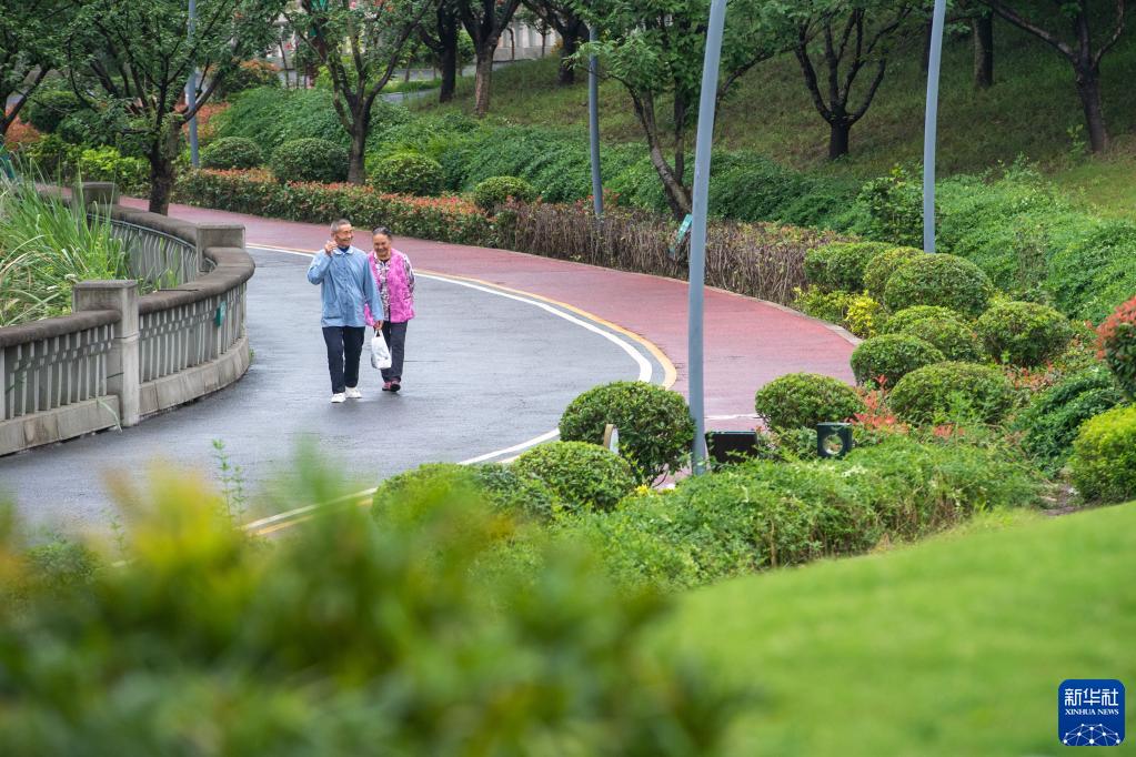 6月7日,在位于重慶市云陽(yáng)縣的云陽(yáng)城區環(huán)湖綠道,市民在休閑散步。當地將生態(tài)治理與生態(tài)修復結合起來(lái),兼顧城市旅游和運動(dòng)休閑等功能需要,打造環(huán)縣城兩江四岸33公里綠道。