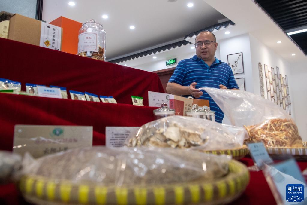 6月7日,在位于重慶市云陽(yáng)縣的重慶三峽云海藥業(yè)股份有限公司,工作人員在介紹各類(lèi)產(chǎn)品。該企業(yè)通過(guò)中藥材資源建設,帶動(dòng)庫區發(fā)展中藥材種植面積10余萬(wàn)畝。