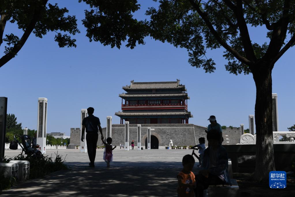 6月6日,人們在北京永定門(mén)公園的永定門(mén)城樓前玩耍。新華社記者 鞠煥宗 攝