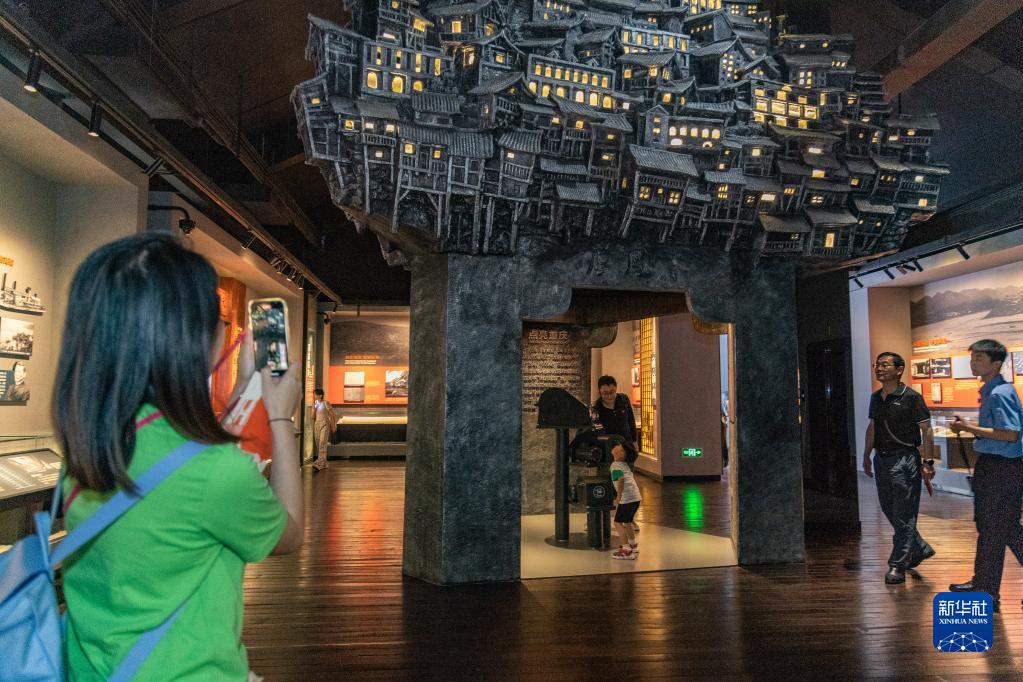 6月10日,在重慶市南岸區,游客在重慶開(kāi)埠歷史陳列館內體驗互動(dòng)裝置。