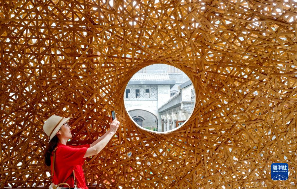 6月9日,游客在重慶開(kāi)埠遺址公園內打卡拍照。
