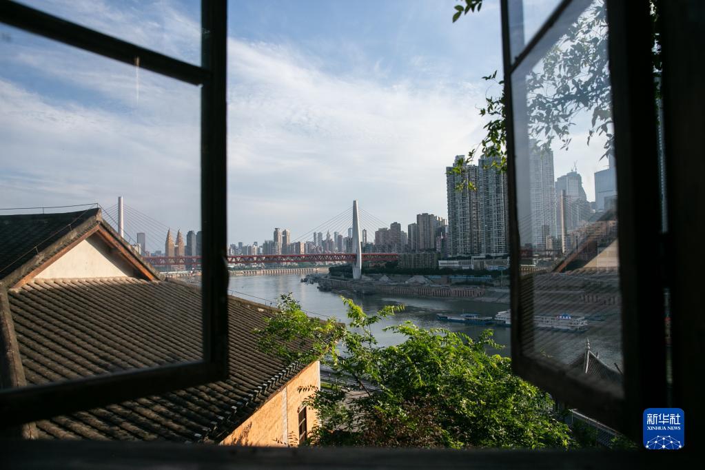 這是6月12日在重慶故宮文物南遷紀念館展廳拍攝的窗外景色。
