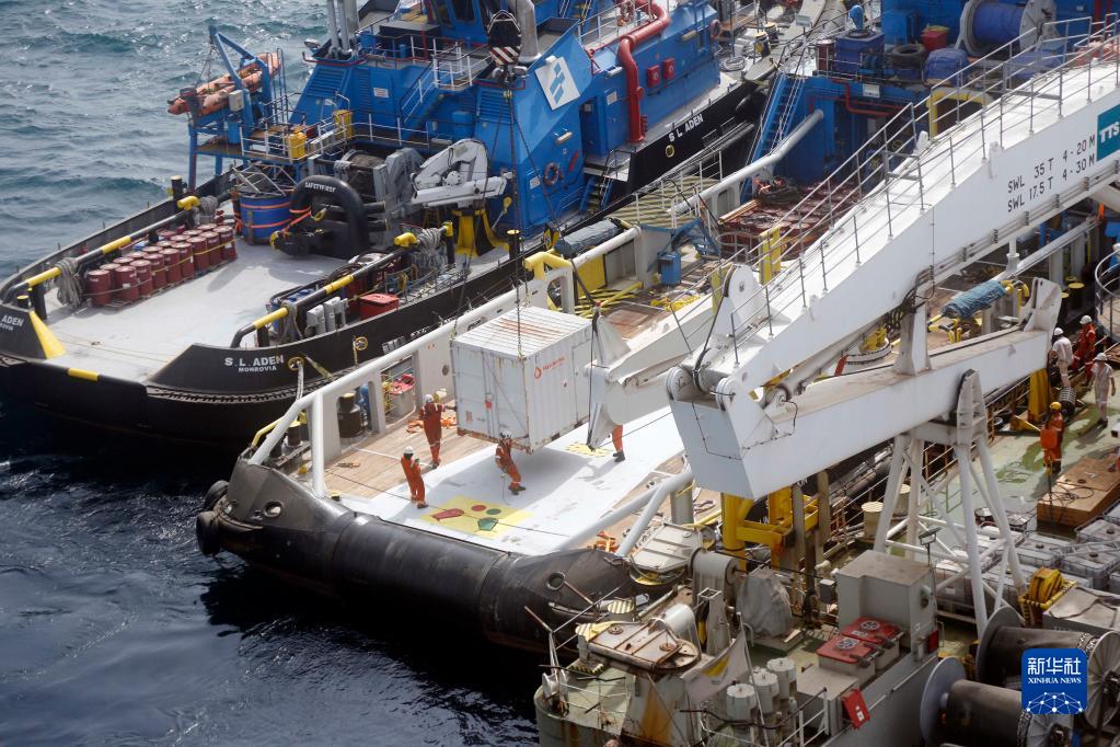 這是6月12日在也門(mén)荷臺達附近海域拍攝的聯(lián)合國工程船。