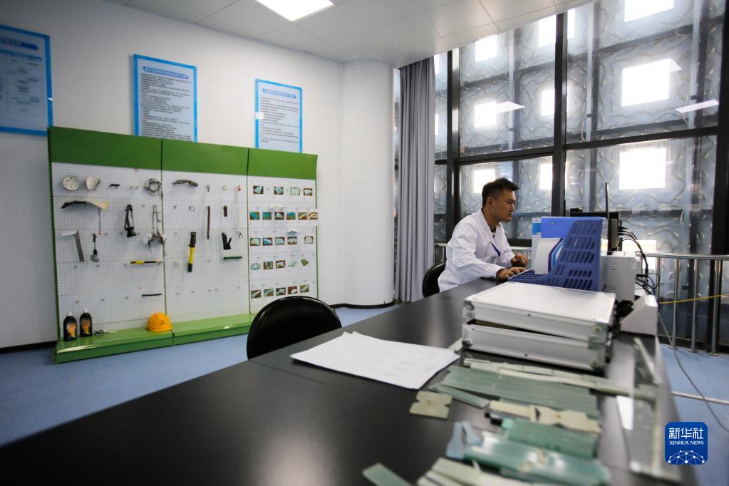 6月13日,工作人員在江蘇射陽(yáng)港零碳產(chǎn)業(yè)園的海上風(fēng)電復合材料檢測中心收集、分析測試數據。