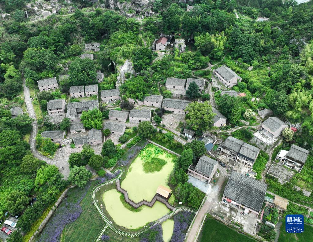 俯瞰蛇蟠島黃泥洞古村(6月14日攝,無(wú)人機照片)。