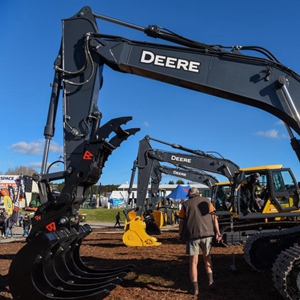 這是6月14日在新西蘭漢密爾頓國際農業(yè)博覽會(huì )上拍攝的參展大型農用機械。