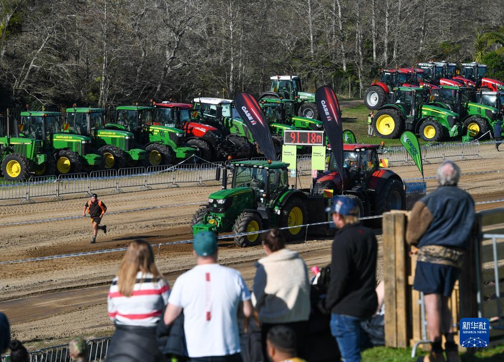 6月14日,在新西蘭漢密爾頓舉行的國際農業(yè)博覽會(huì )上,人們觀(guān)看拖拉機牽引大賽。新華社記者 郭磊 攝