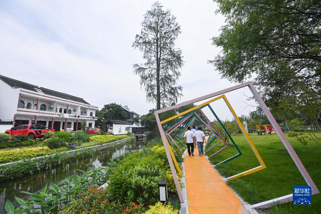 6月15日,游客在嘉興市秀洲區新塍鎮洛東村的公園內游玩。新塍鎮洛東村位于新塍鎮的西北部,2022年,洛東村以?xún)和?huà)為切入點(diǎn),以“鳳凰洲.童畫(huà)村”為主題開(kāi)展未來(lái)鄉村建設,建設布點(diǎn)兒童畫(huà)館、童年劇場(chǎng)等,沉浸式體驗兒童畫(huà)藝術(shù)的魅力。同時(shí)打造“數智+鄰里”的智慧、健康的“兒童友好型”未來(lái)鄉村,被評為2022年度浙江省級未來(lái)鄉村創(chuàng )建成效優(yōu)秀村。