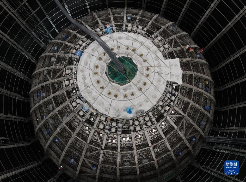 地下探測器目前已完成不銹鋼網(wǎng)架安裝,預計2024年建成運行,屆時(shí)將成為國際中微子研究的中心之一。