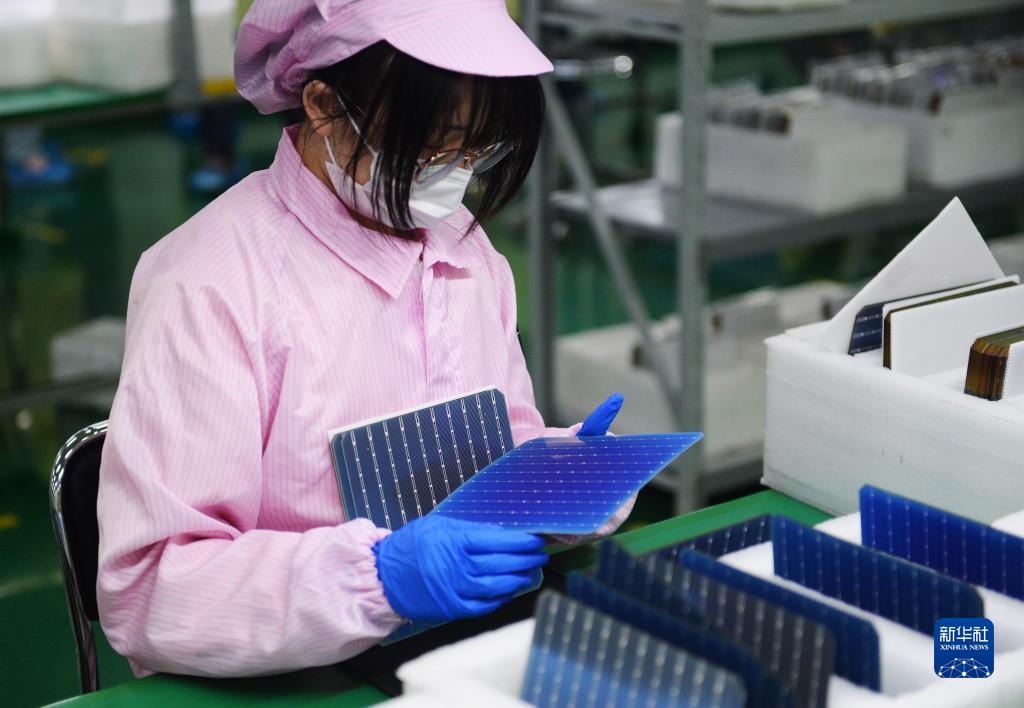 6月17日,在陽(yáng)光中科(福建)能源股份有限公司,工人在高效太陽(yáng)能電池車(chē)間抽檢產(chǎn)品。該公司位于福建泉州南安市,是國家級綠色工廠(chǎng)企業(yè),無(wú)塵自動(dòng)化生產(chǎn)線(xiàn)日產(chǎn)太陽(yáng)能電池80萬(wàn)片。