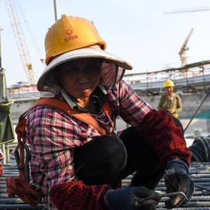 6月16日,在北京城市副中心站綜合交通樞紐項目02標段北京城建施工現場(chǎng),工人在捆扎鋼筋。為了應對高溫天氣,工地已調整作息時(shí)間,施工時(shí)間避開(kāi)了中午高溫時(shí)段。
