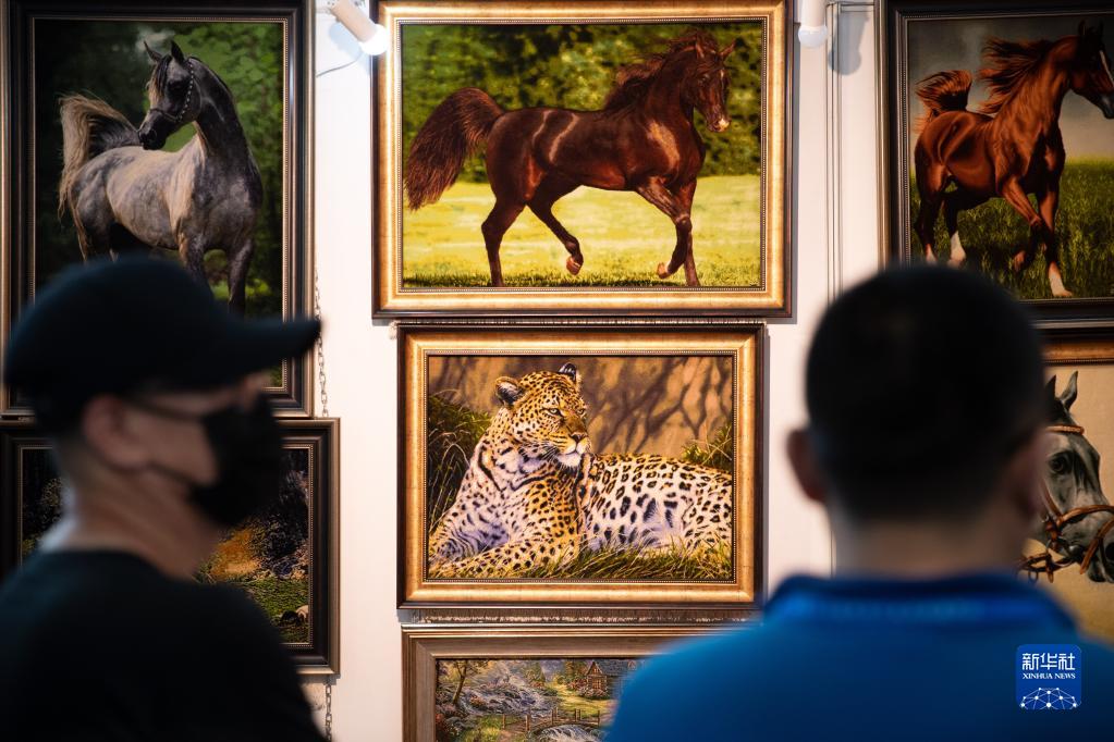 6月16日,人們在伊朗展區欣賞藝術(shù)作品。