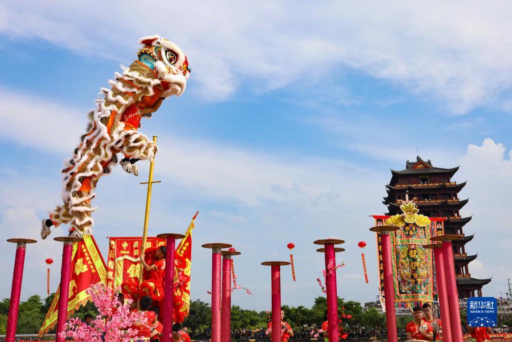 6月20日,在廣西玉林園博園,演員進(jìn)行舞獅表演。