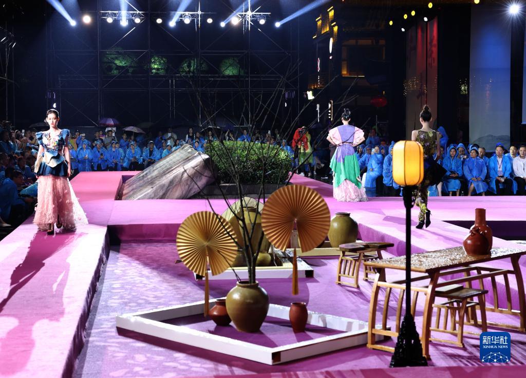 當日,2023重慶國際時(shí)裝周榮昌非遺之夜活動(dòng)在重慶市榮昌區夏布小鎮舉行。該活動(dòng)通過(guò)非遺時(shí)尚秀、靜態(tài)展示等形式呈現國家級非物質(zhì)文化遺產(chǎn)——榮昌折扇和榮昌夏布的魅力,迎接中國傳統節日端午節的到來(lái)。