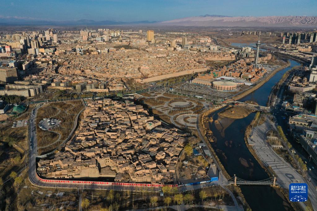 從高空俯瞰喀什市(3月10日攝,無(wú)人機照片)。新華社記者 李響 攝