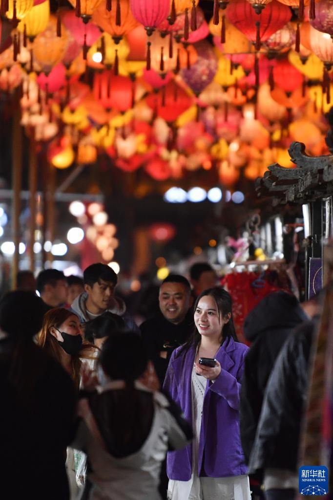 游客在敦煌夜市游覽(3月16日攝)。今年以來(lái),當地對敦煌夜市等特色街區進(jìn)行升級,不斷調整優(yōu)化消費業(yè)態(tài)、改善消費環(huán)境,為游客帶來(lái)多元體驗。