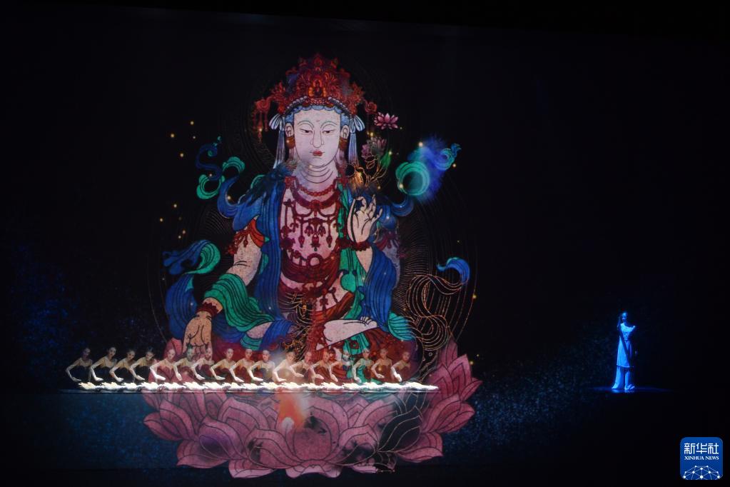 中國殘疾人藝術(shù)團演員在敦煌大劇院表演大型情景音畫(huà)劇《千手千眼》(6月18日攝)。