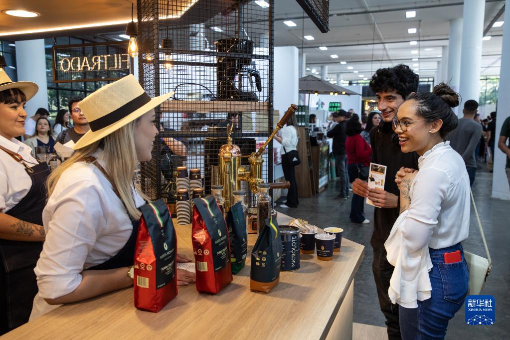 6月23日,工作人員在巴西圣保羅舉行的咖啡節上向參觀(guān)者介紹產(chǎn)品。
