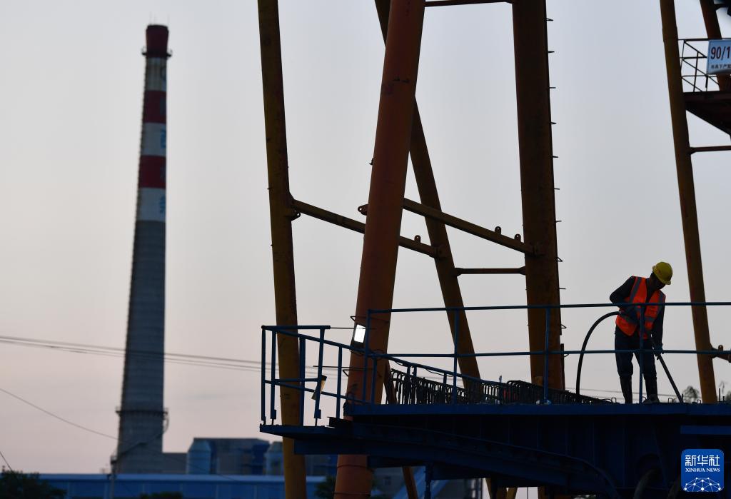 6月25日,中鐵二十局施工人員在位于延安市洛川縣的西延高鐵XYZQ-8標段制梁廠(chǎng)作業(yè)。