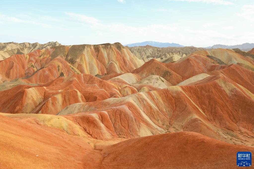盛夏時(shí)節,甘肅省張掖市七彩丹霞景區在藍天白云的映襯下氣勢磅礴,色彩艷麗。