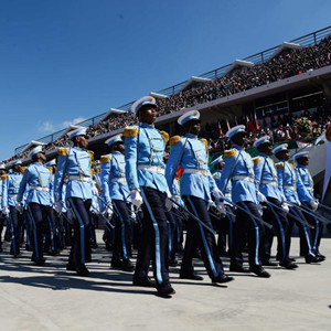 6月26日,在馬達加斯加首都塔那那利佛,馬達加斯加軍人列隊接受檢閱。