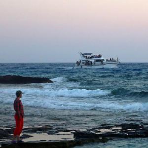 在塞浦路斯圣納帕東部海蝕洞景區,一處海岸邊海水侵蝕后形成的天然石橋“愛(ài)之橋”因美麗的景色成為游客打卡地。