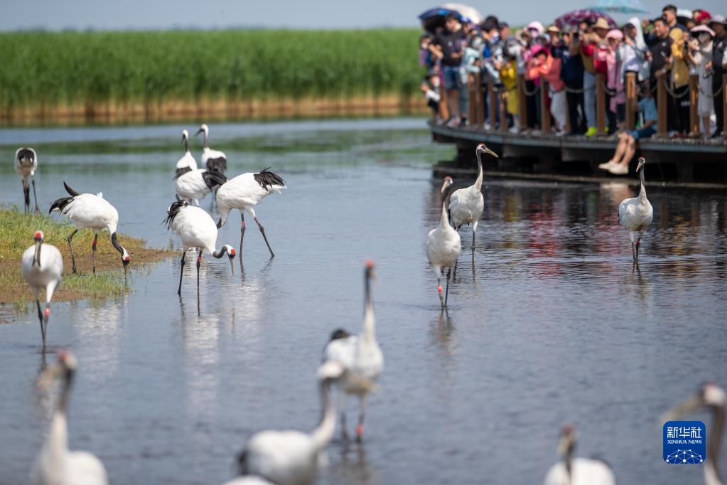 夏日,位于黑龍江省西部的黑龍江扎龍國家級自然保護區郁郁蔥蔥,丹頂鶴悠閑覓食,自在飛翔,呈現出一派生機勃勃的生態(tài)美景。