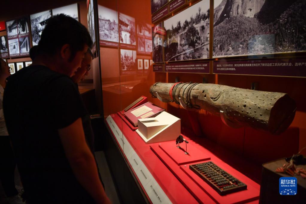 6月30日,觀(guān)眾在延安革命紀念館觀(guān)看《偉大歷程——中共中央在延安十三年歷史陳列》。