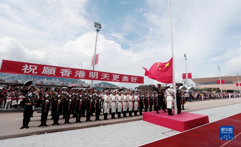7月1日,解放軍駐港部隊昂船洲軍營(yíng)舉行升國旗儀式。