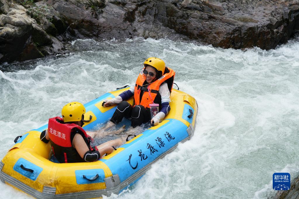 7月1日,游客在湖南省懷化市通道侗族自治縣龍底河漂流。