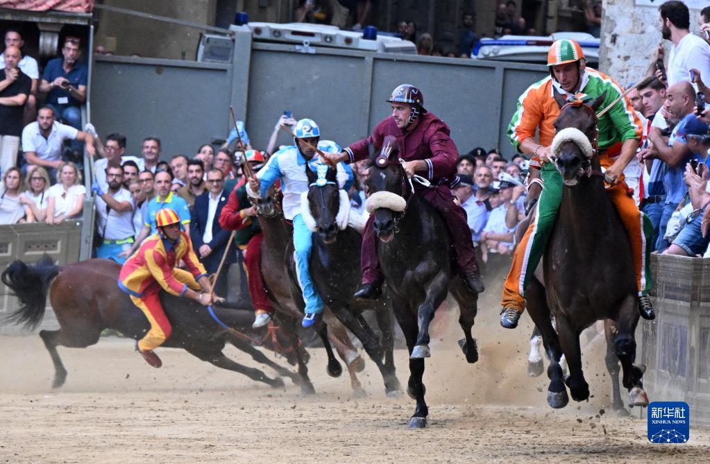 當日,錫耶納賽馬節在意大利托斯卡納大區古城錫耶納市中心的田野廣場(chǎng)舉行,吸引了眾多觀(guān)眾前來(lái)觀(guān)看。錫耶納賽馬節是世界聞名的意大利傳統民間活動(dòng),始于1656年,每年7月2日和8月16日舉行兩次。