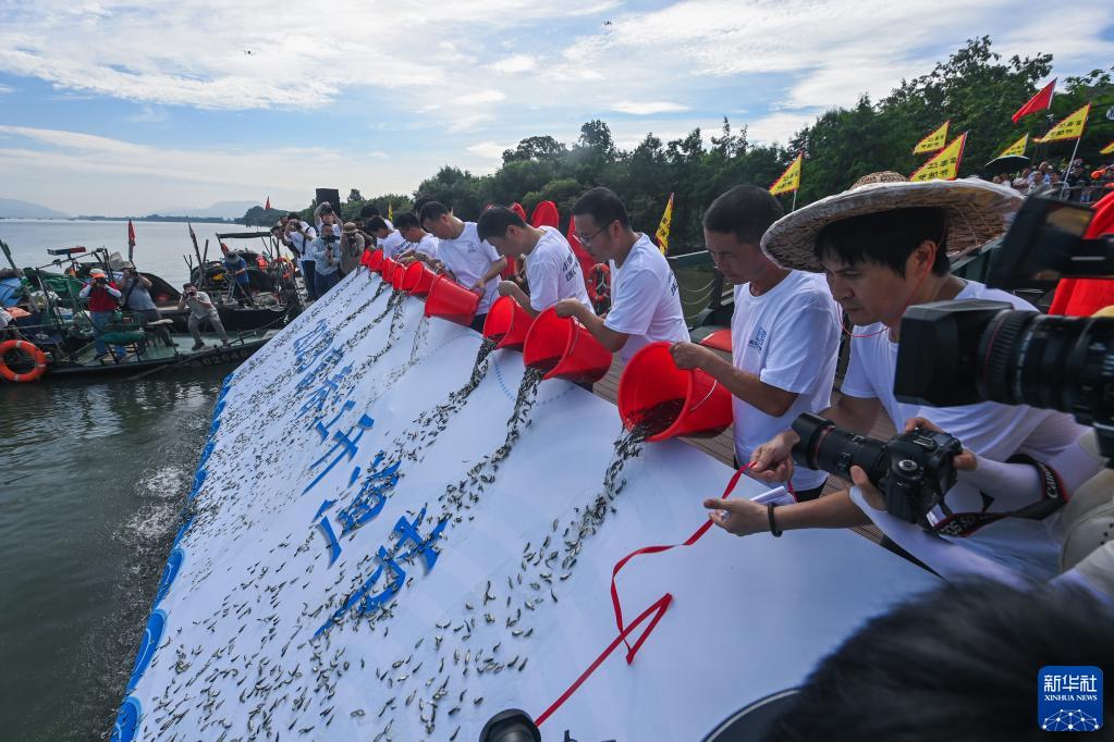 7月3日,富春江開(kāi)漁節現場(chǎng)舉行了增殖放流活動(dòng)。