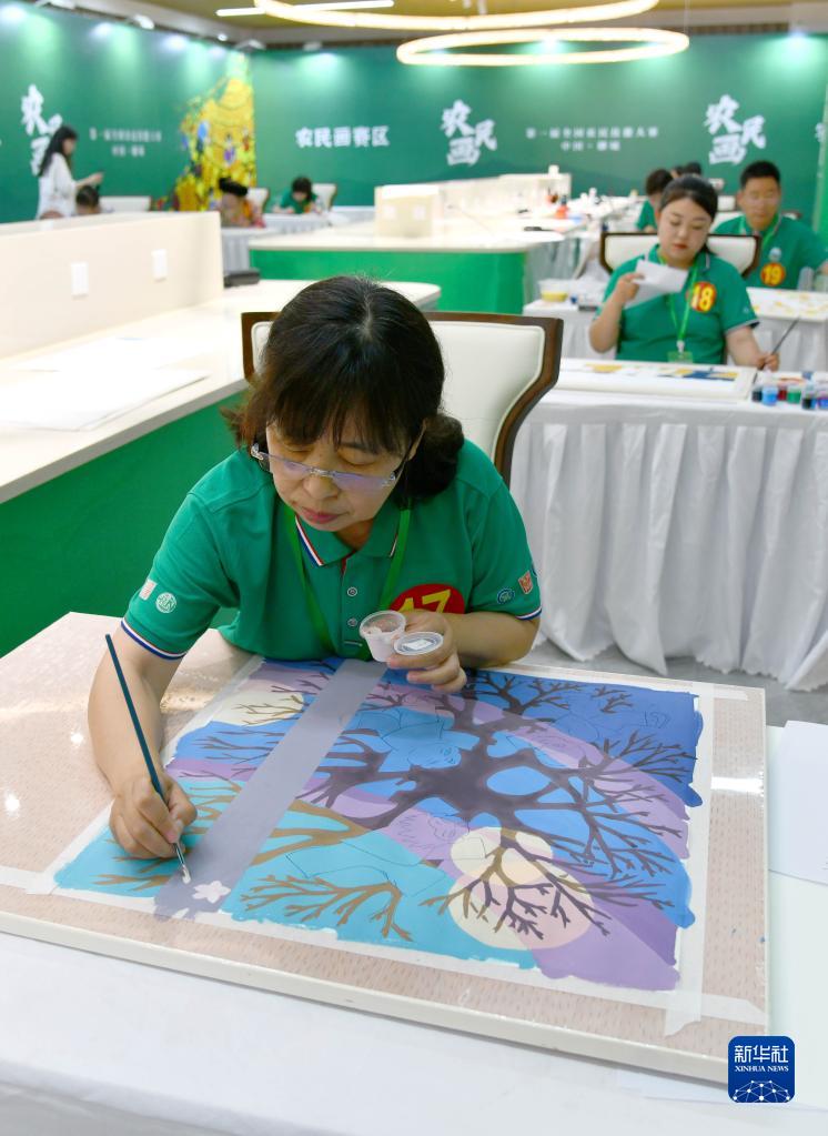 7月3日,在第一屆全國農民技能大賽上,選手參加農民畫(huà)項目比賽。