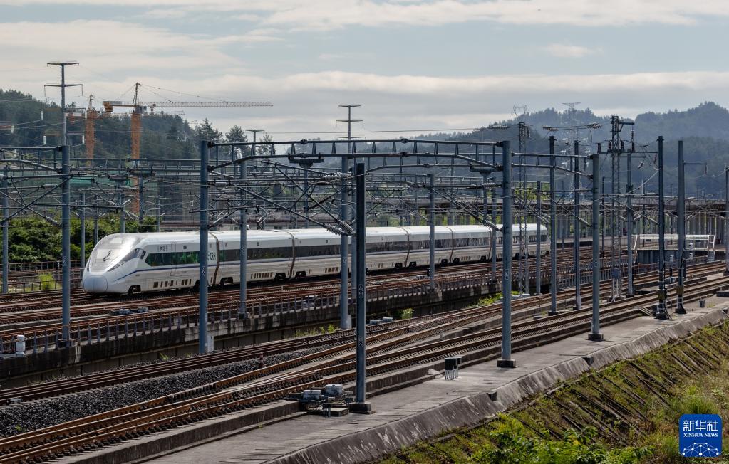 當日,55301次試驗列車(chē)從貴陽(yáng)北站駛出,標志著(zhù)貴南高鐵貴州段進(jìn)入按圖行車(chē)試驗階段。