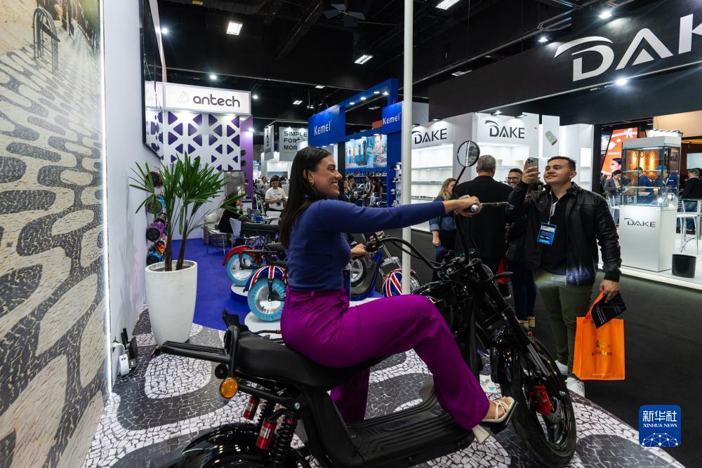 7月10日,在巴西圣保羅舉行的國際消費類(lèi)電子及家用電器產(chǎn)品展覽會(huì )上,參觀(guān)者體驗一款電動(dòng)自行車(chē)。