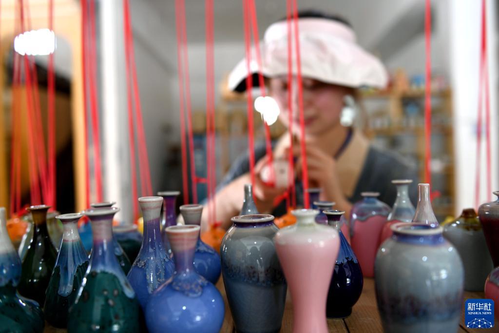 7月11日,游客在貴州省遵義市播州區楓香鎮花茂村土陶制作技藝館選購土陶。