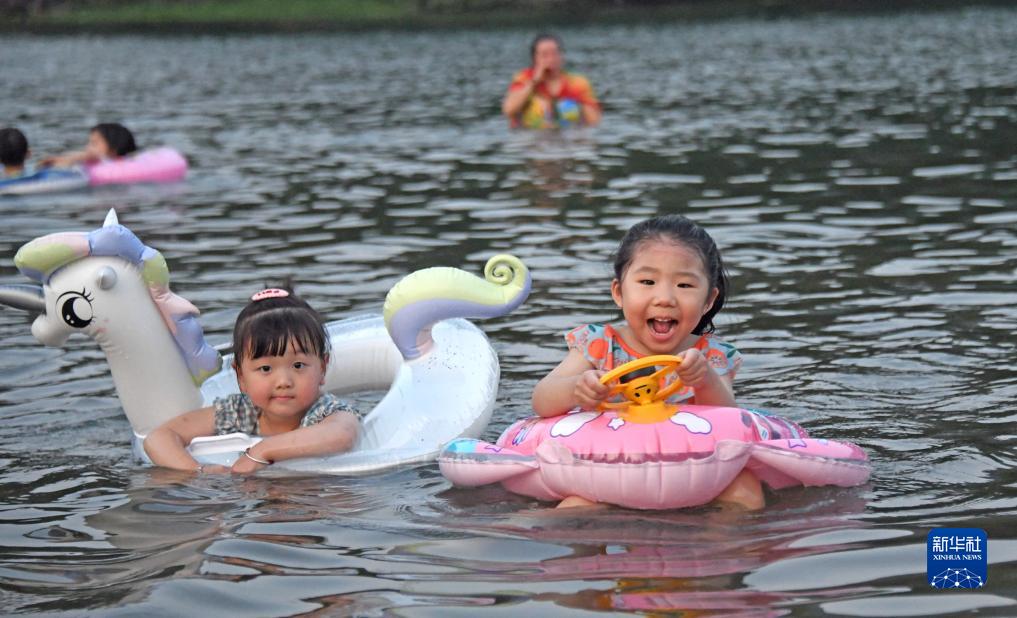 7月11日,孩子們在浙江省臺州市仙居縣永安溪南峰街道浮石園天然浴場(chǎng)戲水玩耍。