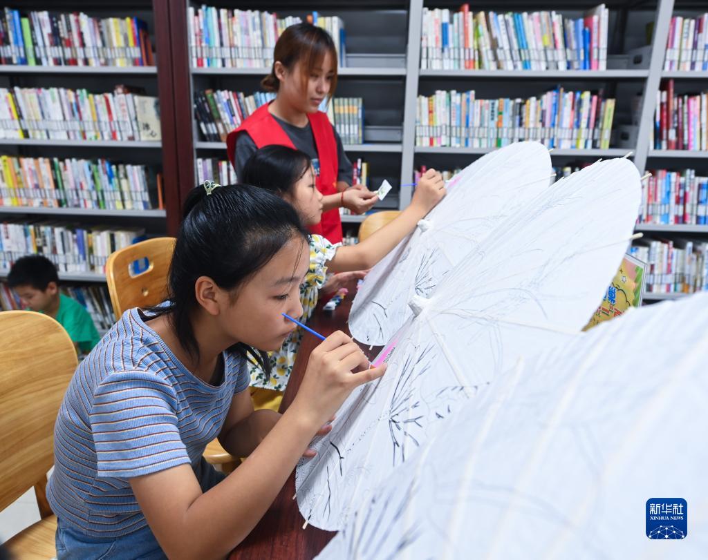 7月12日,在當日開(kāi)班的烏橋村暑期夏令營(yíng)里,孩子們在志愿者的指導下在紙傘上繪畫(huà)。為解決外來(lái)務(wù)工人員子女暑期“看護難”問(wèn)題,嘉興市南湖區新豐鎮社工站聯(lián)合烏橋村開(kāi)展“候鳥(niǎo)歸巢,歡樂(lè )一‘夏’”暑期夏令營(yíng),外地來(lái)此過(guò)暑假的小候鳥(niǎo)們可以在這里學(xué)習科普知識,接受暑期安全教育,參加繪畫(huà)、手工興趣課等。