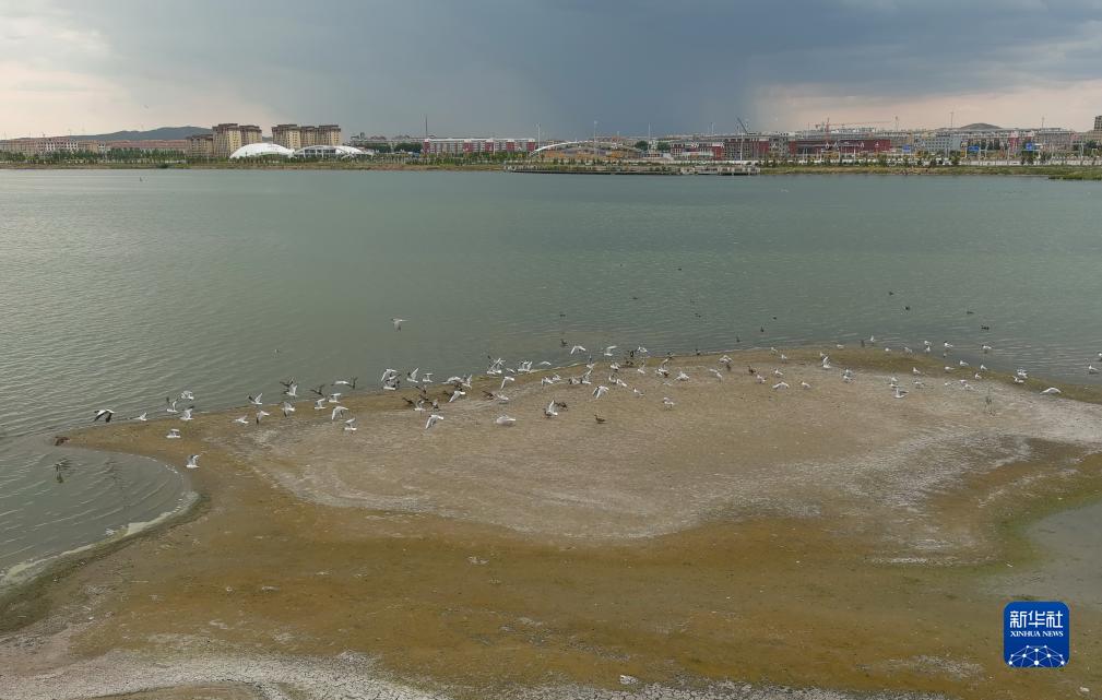 7月11日,一群候鳥(niǎo)在康巴諾爾國家濕地公園飛舞(無(wú)人機照片)。