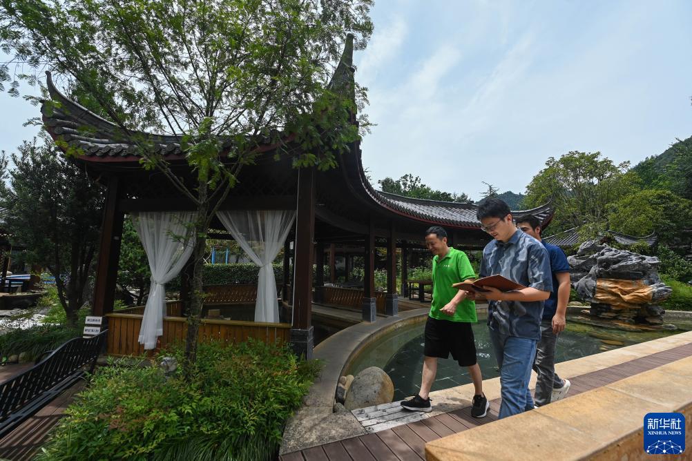 7月13日,在杭州湍口蘆荻古溫泉度假酒店,酒店負責人何資穎(前右)在和員工一起討論溫泉升級提升方案。2019年,通過(guò)湍口鎮“兩進(jìn)兩回”行動(dòng)牽引和新鄉賢牽線(xiàn)搭橋,何資穎來(lái)到湍口鎮經(jīng)營(yíng)溫泉酒店,為周邊村民提供80余個(gè)就業(yè)崗位。