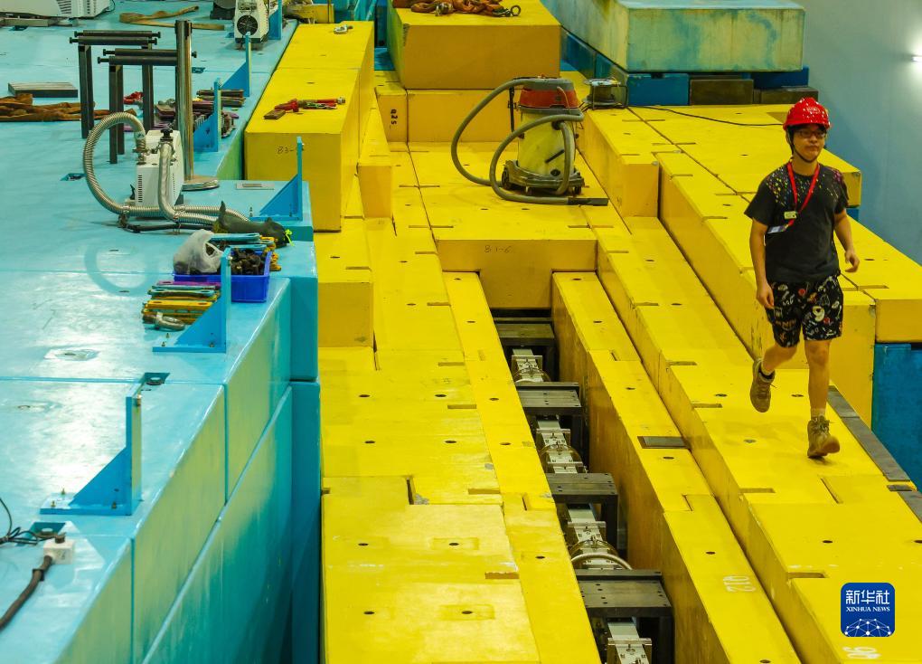 工程師在中國散裂中子源進(jìn)行高分辨中子衍射儀設備安裝(7月18日攝)。