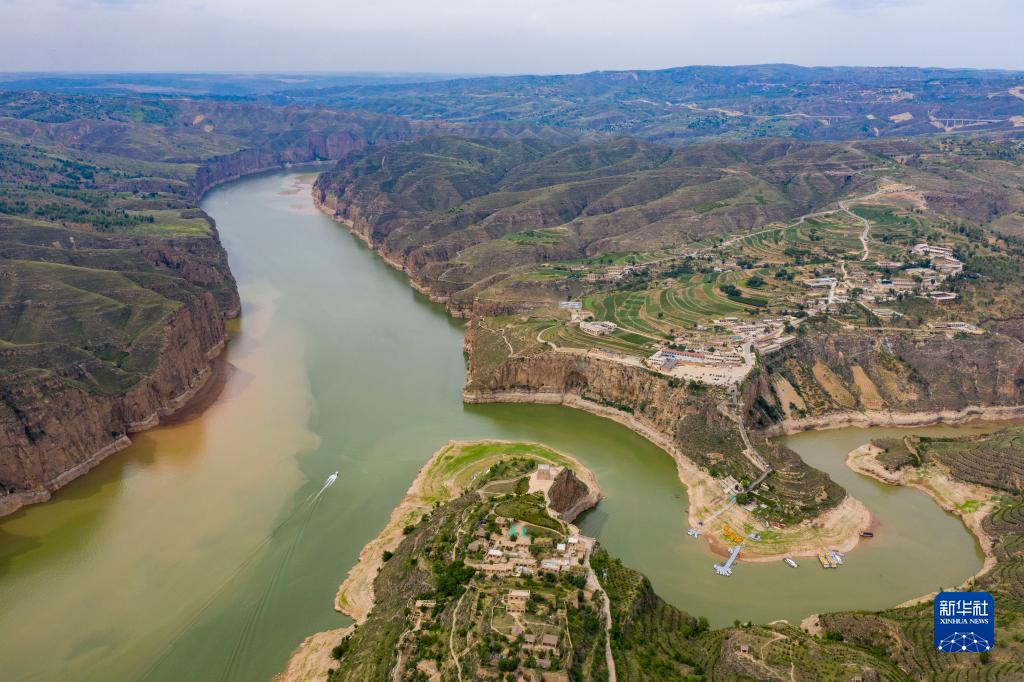 夏日,從空中俯瞰位于山西省和內蒙古自治區交界處的黃河老牛灣,峽谷兩岸壁立千仞,黃河蜿蜒奔流不息,風(fēng)景壯美如畫(huà)。