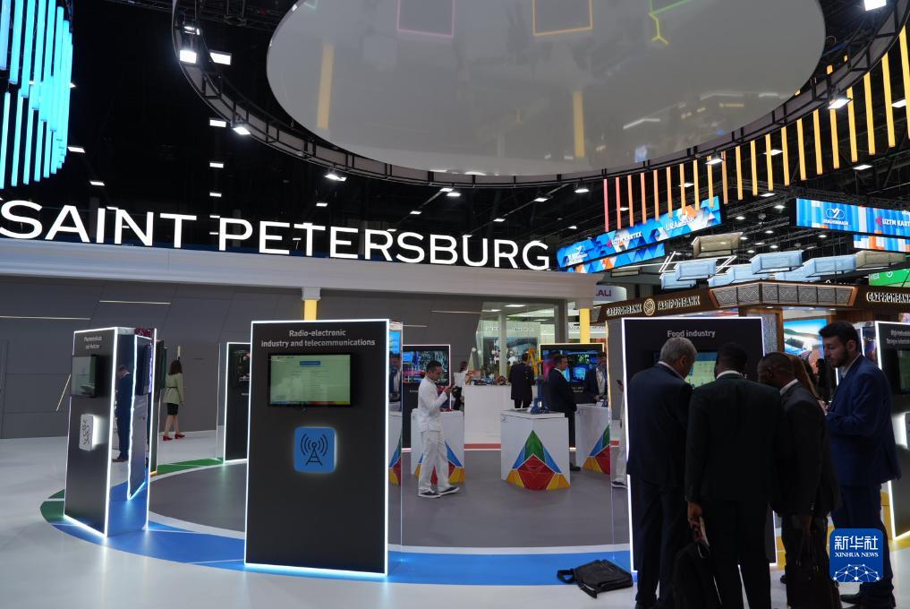 這是7月27日在俄羅斯圣彼得堡拍攝的俄非峰會(huì )圣彼得堡市展區。